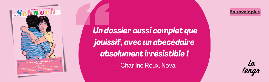 « Pour son 56e numéro l'indispensable revue Schnock a réuni un épais dossier consacré à La Boum. Un centaine de pages fondantes sur ce bonbon de cinéma des années 1980 », Adrien Gombeaud, Les Échos.